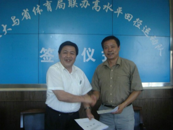 2006年7月13日下午,安徽工业大学与安徽省体育局共同举办高水平运动队签字仪式在省体育局二楼会议室举行。省体育局局长冯潮,我校校长董元篪分别在协议书上签字。