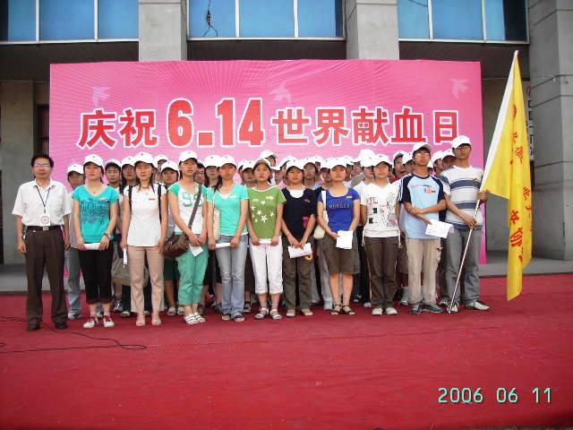 6月11日上午,我校58名大学生无偿献血志愿者与马鞍山市其他愿者们一起来到市展览馆广场,大家纷纷伸出胳膊,献出热血,以实际行动来共同纪念第三个“6.14世界献血者日”和马鞍山市无偿献血志愿者协会成立一周年。