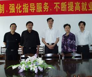 虞志方副厅长(中)、省教育厅办公室主任吕萍(右二),在校长董元篪陪同下,检查指导我校大学生就业工作。校学生工作部(处)陈选华、团委赵保平参加了会见。