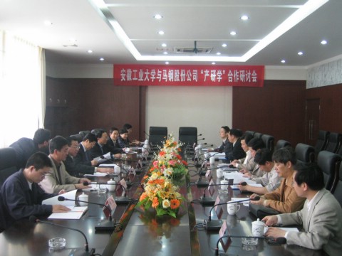 2006年4月30日,安徽工业大学与马鞍山钢铁股份有限公司产学研合作研讨会在我校学术会议中心隆重举行,会议旨在进一步推进校企合作。马钢股份公司领导顾建国、朱昌逑、施雄?、苏世怀及技术中心的领导和专家,安徽工业大学校领导董元篪、岑豫皖、李家新及相关单位和部门负责人等参加了会议。