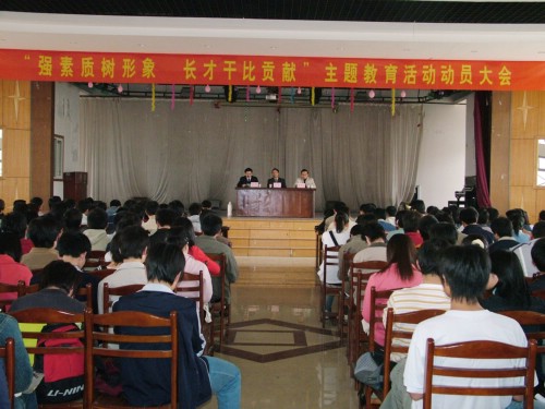 为进一步深入贯彻落实《中共中央国务院关于进一步加强和改进大学生思想政治教育的意见》精神,切实加强我校大学生的思想道德建设,引导学生牢固树立社会主义荣辱观,我校在大学生中开展为期2个月的“强素质树形象,长才干比贡献”主题教育活动。活动重点围绕理想信念教育、强化学风教育、文明道德教育、创新意识教育四大版块开展,旨在积极倡导学生“朴实生活、踏实学习、务实做事、诚实做人”,通过引导学生勤奋学习、明礼修身、开拓创新、磨练意志、锻炼能力,促使大学生全面发展,积极奉献。学校有关部门为此专门印发通知,召开动员大会就主题教育活动的开展做出具体安排。