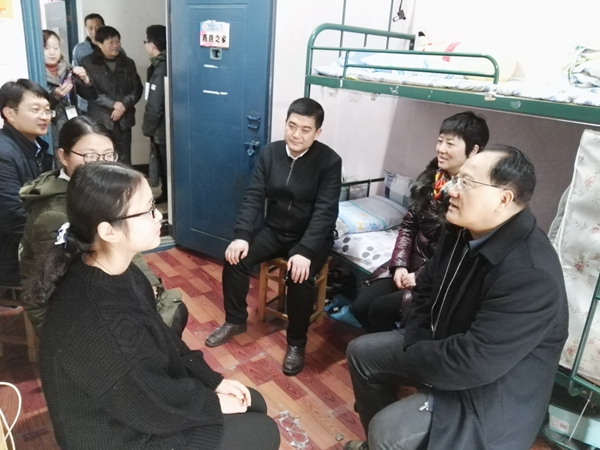 3月5日上午,新学期开学第一天,校党委书记刘新跃深入秀山校区课堂检查新学期第一节课的课堂教学情况,走访学生宿舍看望慰问学生生活情况,并调研部分单位指导新学期开学工作。