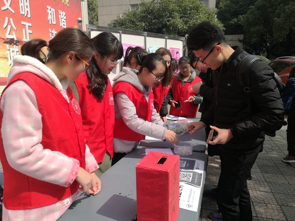 在佳山校区三餐厅广场,志愿者们开展了雷锋精神宣讲活动。他们通过海报展板展示了雷锋的生平和事迹,开展学习雷锋精神有奖竞答活动。展板前,不少被吸引前来答题的学子,答对相关问题即可获得定制的雷锋头像徽章,通过青年学子喜闻乐见的形式进一步引导大家认识雷锋、了解雷锋,推进落实学雷锋活动常态化。学习雷锋从身边做起,从美化校园环境做起,新学期第一天,志愿者们开展了美化校园活动,清扫校园的各个角落。志愿者打扫校园环境的身影吸引了众多同学的目光。