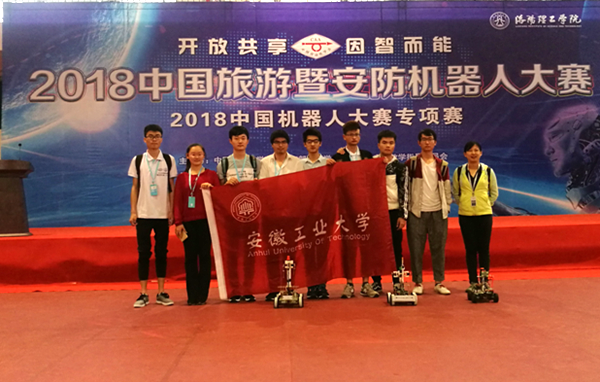 5 月25日 至27日,由中国自动化学会主办的2018中国旅游暨安防机器人大赛在河南洛阳理工学院举办,我校派出3支队伍参加此次比赛,其中ahut_越野一队获得亚军(一等奖),ahut_越野二队、旅游机器人队获三等奖。