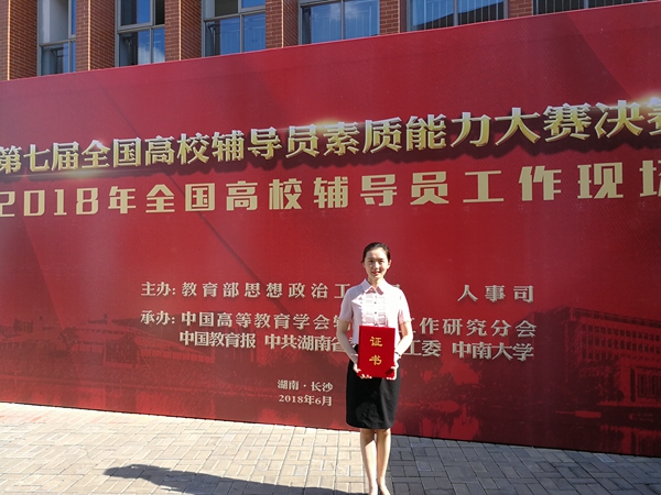 6月23日至24日,由国家教育部思想政治工作司、人事司主办,中国高等教育学会辅导员工作研究分会承办的第七届全国高校辅导员素质能力大赛决赛在中南大学举办。来自全国各省(自治区、直辖市)选派的78名选手参加了本次全国决赛,共评选出一等奖10名、二等奖20名、三等奖48名。经过激烈角逐,我校建筑工程学院辅导员赵颖虹以第七名的优异成绩荣获全国一等奖,实现了我校辅导员在该项赛事上的历史性突破。
