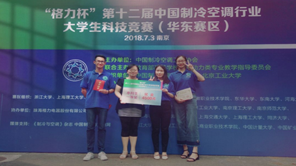 7月1日至3日,第十二届中国制冷空调行业大学生科技竞赛决赛(华东赛区)在东南大学举行。我校代表队与浙江大学、上海交通大学、东南大学、上海理工大学、南京工业大学等17支队伍同场角逐,在经历了实践操作、创新答辩、知识竞答三大项目后,我校代表队以总分第一的成绩取得一等奖。本赛事我校已连续参加5届,此次是我校代表队在该赛事上取得的最好成绩。同时,我校选手以优异的表现,获得珠海格力电器股份有限公司2019届校园招聘Offer直接签约。