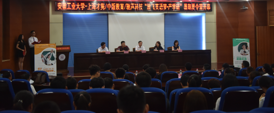 7月16日上午,安徽工业大学与上海才隽网络科技有限公司、中版教育世界图书出版公司、苏州驰声信息科技有限公司共同举办的“放飞英语梦•产学研”暑期夏令营开营仪式在秀山校区图书馆第一学术报告厅举行。副校长祖明出席开营仪式,相关企业、外国语学院负责人,承训教师代表和近百名同学参加活动。