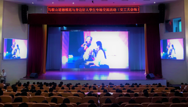 9月14日,马鞍山市道德模范与身边好人学生专场交流活动在市大剧院主会场及6所高校分会场举行。我校组织近750名师生参加主会场及我校分会场活动。校党委书记刘新跃出席主会场活动并致辞。