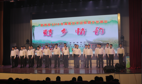 10月24日晚,由安徽省教育厅主办、滁州学院花鼓艺术团承演的2018年高雅艺术进校园“鼓乡情韵”文艺演出在我校秀山校区大学生活动中心拉开帷幕,全校师生共500余人观赏了演出。