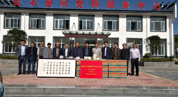 在沙岗店村,校领导代表学校捐赠了LED电子屏以及党建、科技、文化、农业、电商等图书200多册;在红石岩村,捐赠了励志书法和党建、科技、文化、农业、电商等图书200多本及援建标准化篮球场。