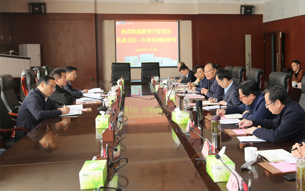 吴进简要说明了此次调研的目的和内容,刘新跃代表学校对省教育厅监管办莅临我校调研指导审计工作表示欢迎,并介绍了我校基本情况和审计机构建设情况及主要成绩,表示学校高度重视审计工作,审计工作行为不断规范、质量不断提升、成效不断显现。魏先文代表学校就我校内部审计体制机制建立及运行成效、内部审计制度建设情况、审计项目开展情况以及原校长李家新同志任期经济责任履行情况审计整改情况、学校2017年度预算执行与财务收支专项审计整改工作进展情况做了专题汇报。