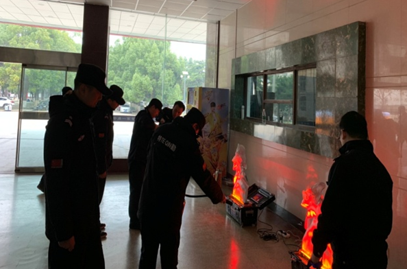 灭火演练随后开始。在安全保卫部消防科专业人员的指导下,师生代表学习了灭火器的使用方法和操作规范,并手持电子灭火器,现场体验,在实战中提高消防应急能力。