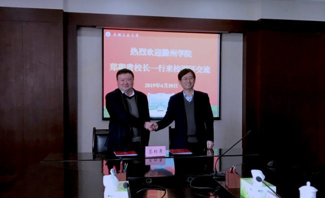 4月30日上午,滁州学院校长郑朝贵一行来我校调研交流并与我校举行联合培养硕士研究生签约仪式,校长魏先文出席仪式。学校办公室、研究生院、机械学院、材料学院、化工学院、电气学院、计算机学院等单位负责人参加会议。