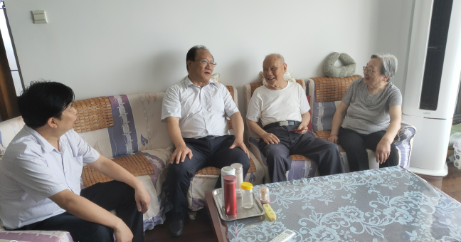 7月3日下午,刘新跃一行看望97岁高龄、有着81年党龄的学校原党委书记吴湘聚,88岁高龄、66年党龄的老校长王端庆,送上慰问金,并亲切询问了吴老和王老的身体状况和生活情况,深情回顾了他们在学校工作的岁月和为学校建设作出的卓越贡献,叮嘱他们要保重身体,继续发挥余热,为学校发展建言献策。