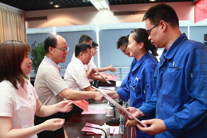 刘明为学校中天钢铁函授站2019届毕业生颁发了毕业证书,范筱文宣读《关于表彰2019届优秀毕业生的决定》。刘明代表学校、赵金涛代表中天钢铁集团分别发表了热情洋溢的致辞,对学生克服工学矛盾、刻苦学习完成学业的精神表示赞扬,对函授站同志们的规范管理和辛勤付出给予肯定,对毕业生在今后的工作和学习中的提升和发展提出了希望与要求。与会领导为获奖学生颁发了荣誉证书和奖金。来自一炼铁的冯源同学和来自三炼钢的黄文俊同学分别代表专科及本科毕业生发表了毕业感言。