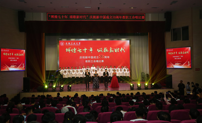 9月26日晚,秀山校区大学生活动中心现场歌声飞扬,曲声激荡。“辉煌七十年,颂歌新时代”庆祝新中国成立70周年教职工合唱比赛在这里精彩上演。本次比赛由校工会、党委组织部和党委宣传部联合主办,校团委协办,来自全校各基层分工会组成的21支合唱队1000多名教职员工齐声歌唱,祝福伟大的祖国。
