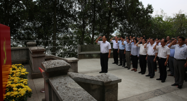 活动现场,校党委书记刘新跃率全体党员干部步行至人民英雄纪念碑鲜红的党旗前,静默肃立,庄严宣誓,重温入党誓词,并深深三鞠躬,深切地表达了对革命烈士的缅怀之情和崇高敬意。随后,大家依次参观了西梁山革命烈士纪念馆内旧民主主义革命阶段、新民主主义革命阶段、抗日战争时期、解放战争时期、社会主义建设阶段五个展厅,一幅幅沧桑的历史图片,一段段珍贵的文献资料,真实地再现了革命烈士为革命事业抛头颅、洒热血的英勇事迹,党员干部们深刻地感受了革命先烈们大无畏的牺牲精神和共产党员的无私奉献精神,纷纷表示将进一步发扬革命传统,传承优良作风,增强战斗本领,切实做到忠诚、干净、担当。