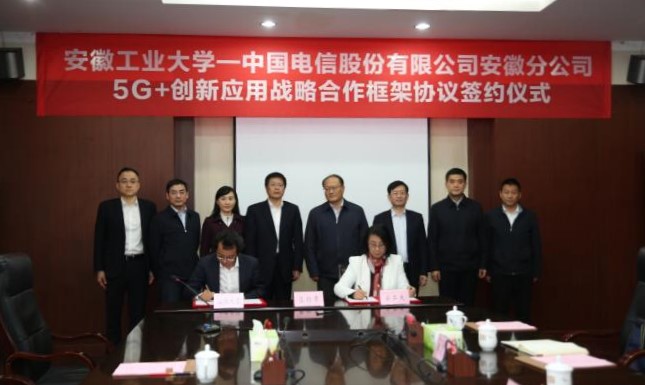 11月13日下午,我校与中国电信安徽公司在佳山校区会议中心签订5G+创新应用战略合作框架协议。中国电信安徽公司党委委员、副总经理方文胜,党委委员、副总经理郑家升,校党委书记刘新跃,校长魏先文,副校长顾明言出席签约仪式。签约仪式由魏先文主持。