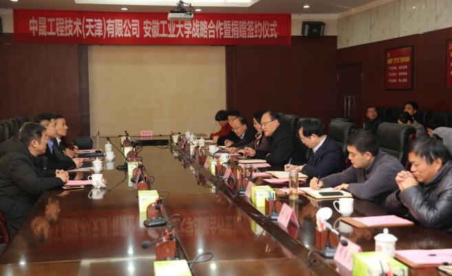 中晟工程技术(天津)有限公司副总经理翟栋、市场总监胡立夫、经理赵茹泉,我校党办校办、研究生院、学生工作部(处)、校友处(基金会秘书处)、国际合作与交流处、科研处、人事处、财务处、冶金学院、建工学院、能环学院、继续教育学院负责人参加了签约仪式。(文/宁永球 图/王旭东 审核:甘亚 窦贤琨  黄勇)