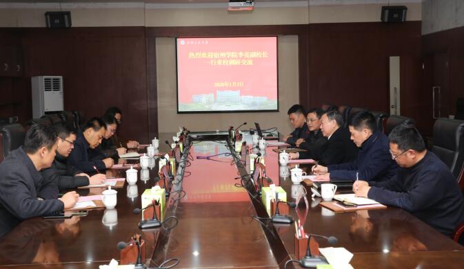 1月3日下午,宿州学院副院长李亮一行5人来我校调研交流校园安全工作,座谈交流会在佳山校区会议中心举行。校党委副书记祖明,安全保卫部负责人参加座谈会。