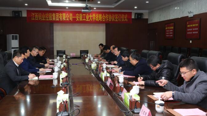 1月3日上午,江西钨业控股集团有限公司副总经理匡兵一行来我校开展产学研交流并签订战略合作协议。江西钨业控股集团有限公司总经理助理张鑫、科技管理部总经理唐德胜,江西江钨硬质合金有限公司执行董事郭永忠、副总经理陈玉柏,校长魏先文、副校长水恒福,科研处及相关学院负责人出席签约仪式。仪式由水恒福主持。会前,校党委书记刘新跃会见了匡兵一行。