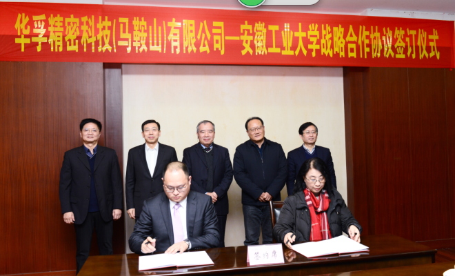 1月3日下午,我校与华孚精密科技(马鞍山)有限公司战略合作签约仪式在校学术会议中心举行。马鞍山市委常委、组织部部长、统战部部长范奇,市政府副市长李强,我校党委书记刘新跃、校长魏先文、副校长顾明言等领导出席签约仪式。市台办、市经开区管委会,华孚科技集团、华孚精密科技(马鞍山)有限公司以及学校相关部门和学院负责人等参加仪式。仪式由魏先文主持。