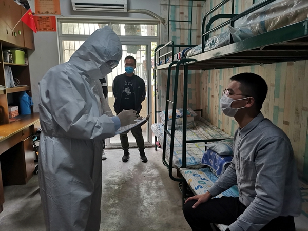 在秀山校区北门,学生入校时按照地面标线,每人间隔一米,有序排好队伍准备入校,严格按照“一测二核三查四通过”的程序,依次进行体温测量、身份核查、健康码查验。入校时一位同学在体温检测时发现异常,在现场工作人员带领下至体温复测区,由校医院医生仔细询问其身体状况,开展体温复测并记录,仍发现其学生体温异常,立即带至临时隔离区,启动应急处置预案,逐级报告疫情防控应急指挥部,安排应急处置专车,在校医院医生陪同下将学生送市医院发热门诊。