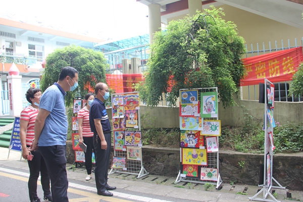 刘明一行实地查看了园所环境,了解孩子们在园生活、学习和活动情况,观看了《童心抗疫 祝福祖国》——庆“六一”主题亲子绘画作品展,并代表学校向孩子们送去美好的节日祝福。
