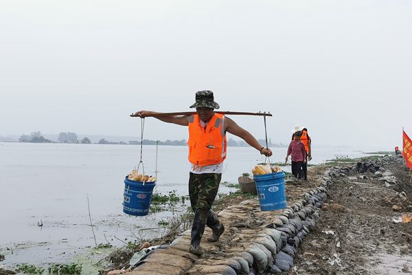 “巡堤查险是防汛一线中的一线,也是最关键、最有效的措施。堤坝长时间受高水位浸泡影响,极易发生滑坡等险情,在巡堤过程中不可放过任何一个疑点和隐患。我们是党员,就要成为群众最坚定的‘主心骨’,守护好老百姓的美好家园。”我校抗洪抢险突击队成员、后勤处党员嵇虎介绍说。嵇虎是一名退伍老兵,曾参与1998年江西九江、2016年当涂湖阳和今年当涂湖阳、江心乡、大公圩以及雨山区佳山乡等多次防汛抗洪抢险任务。