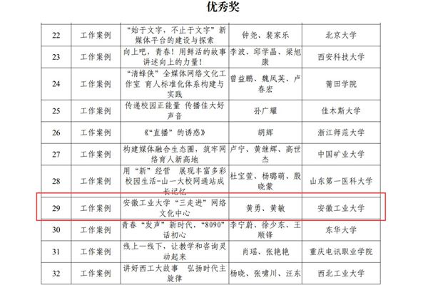近日,第四届“全国大学生网络文化节”和“全国高校网络教育优秀作品推选展示活动”获奖名单公布,我校作品获得一等奖1项(安徽省高校仅2个),优秀奖1项,取得我校在该类活动中的历史最好成绩。