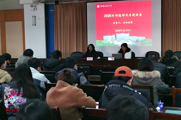 12月6日下午,我校在佳山校区学术会议中心举办师德师风专题报告会。2020年安徽省新时代教书育人楷模、中国科学技术大学教授、我校知名校友安虹应邀来校作题为《给低年级本科生上好一门专业基础入门课》的报告。报告会由副校长顾明言主持,新入职教师和部分教师代表共150余人聆听了报告会。