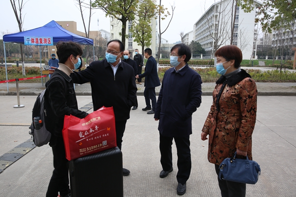 学生返校期间,正在我校调研的省委教育工委书记钱桂仑一行来到秀山校区实地查看春季学期学生返校报到情况,详细询问了学生返校疫情防控工作安排,对我校开学各项准备和组织工作、疫情防控措施给予充分肯定。在校校领导党委书记刘新跃,校长魏先文,副校长顾明言、刘明,校纪委书记潘淑琴深入学生报到现场检查指导工作,要求各部门、各学院进一步提高政治站位,强化责任担当,把学生健康放在第一位,严格执行学生返校工作流程,努力为学生提供细致、周到的服务。校领导同返校同学亲切交谈,了解大家寒假返乡后的学习生活,强调开学后的疫情防控要求,鼓励大家珍惜大好时光,以饱满的精神状态投入新学期学习和生活中。