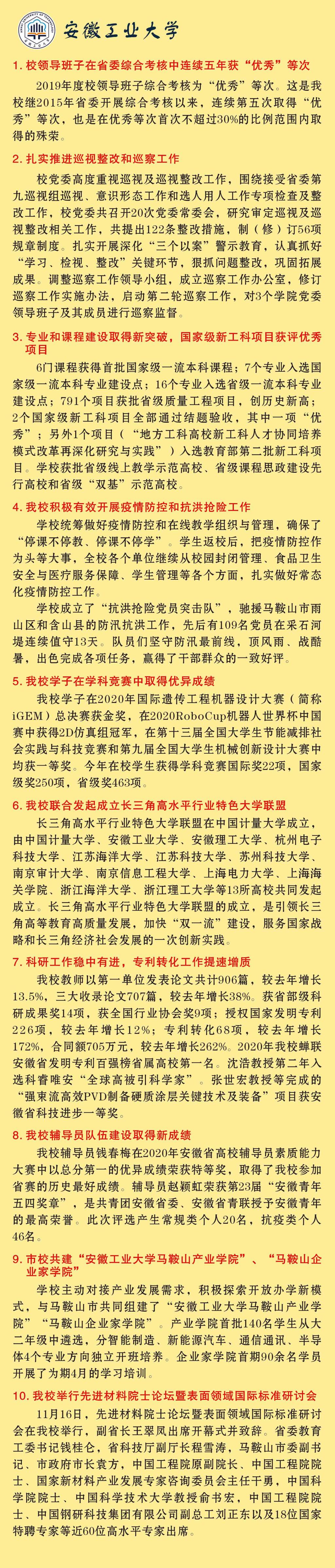 我校2020年“十件大事”评选结果于近日揭晓。前期,校工会、党委宣传部向全校征集2020年“十件大事”候选题并开展投票评选工作,共有1908名教职工参与投票。经统计排序并报学校党委常委会研究,最终确定2020年“十件大事”。