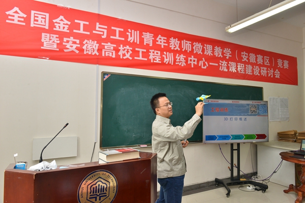 6月19日,全国金工与工训青年教师微课教学(安徽赛区)竞赛暨安徽高校工程训练中心一流课程建设研讨会在我校举行。副校长水恒福,教育部工程训练教学指导委员会副主任委员、合肥工业大学朱华炳,教育部工程训练教学指导委员会委员、南昌航空大学朱民出席开幕式。