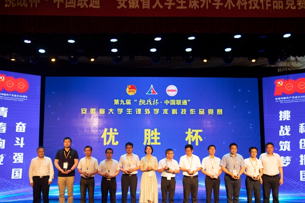 6月20日至21日,第九届“挑战杯”安徽省大学生课外学术科技作品竞赛颁奖仪式在安庆师范大学举行。我校以一等奖7项、二等奖3项,总分全省第二名的成绩荣获本届赛事“优胜杯”。