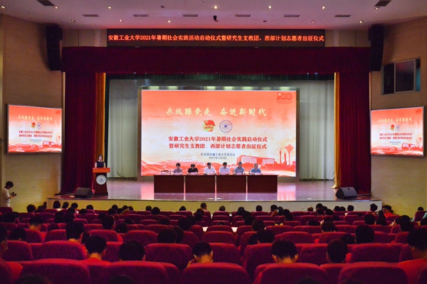 7月2日下午,我校“永远跟党走奋进新时代”2021年大学生暑期社会实践活动启动仪式暨研究生支教团、西部计划志愿者出征仪式在秀山校区新大学生活动中心举行。校党委副书记祖明出席启动仪式,宣传部、学工部、研工部、教务处、团委、工创中心等部门负责人以及各学院党委副书记、团委书记,指导教师代表、社会实践队员代表以及研究生支教团成员和西部计划志愿者参加启动仪式。