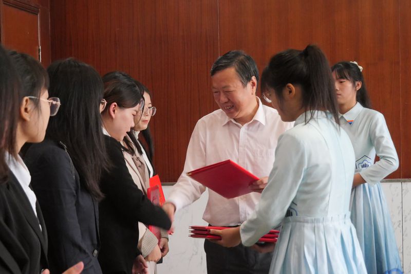 祖明代表学校向所有受到表彰的研究生支教团同学表示热烈的祝贺,对历届研究生支教团的支教工作表示充分肯定。祖明对同学们提出三点希望,一要坚定理想信念,树立远大志向。希望同学们始终坚持为祖国、为人民奉献青春的初心信仰,在志愿服务的岗位上用心学习,锻炼本领,历练成长,在为西部地区基础教育事业中贡献小我,在最美的年华里闪耀青春;二要弘扬志愿精神,担当时代责任。希望同学们点亮青春的“指明灯”、提升青春的“能力值”、练就青春的“宽肩膀”,向着梦想的方向奔跑,行稳致远;三要主动开拓创新,砥砺奋进力量。希望同学们发挥高校学子在先进教育理念的普及、信息化远程教育教学技术的运用等方面的优势,结合服务地实际,积极参与和推动服务地县域教育改革和乡村振兴。