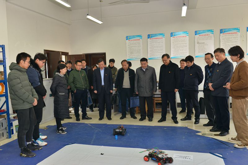 11月26日,省委党史学习教育第十巡回指导组来我校开展巡回指导工作。指导组组长、省社会科学院党组书记、院长曾凡银,指导组副组长、省市场监管局副局长丁祖权,指导组成员省社会科学院办公室副主任王磊、省发改委以工代赈处四级调研员胡腾阳、省文联杂技家协会秘书长贺永军一行到电气与信息工程学院、艺术与设计学院调研党史学习教育开展情况。校党委书记陆林,校党委副书记祖明、党委宣传部负责人陪同调研。