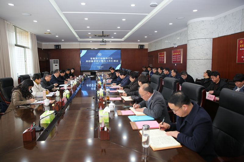 25日下午,学校在佳山校区会议中心第一会议室召开了省教育厅赵振华厅长来校督导审计整改工作汇报会。赵振华和督导组全体成员出席会议。校党委书记陆林主持会议,全体校领导以及党办校办、纪委办、发规处、科研处、财务处、资产处、审计处、校友处、工程研究院、后勤处、资产经营公司、睿安公司等部门负责人参加了会议。