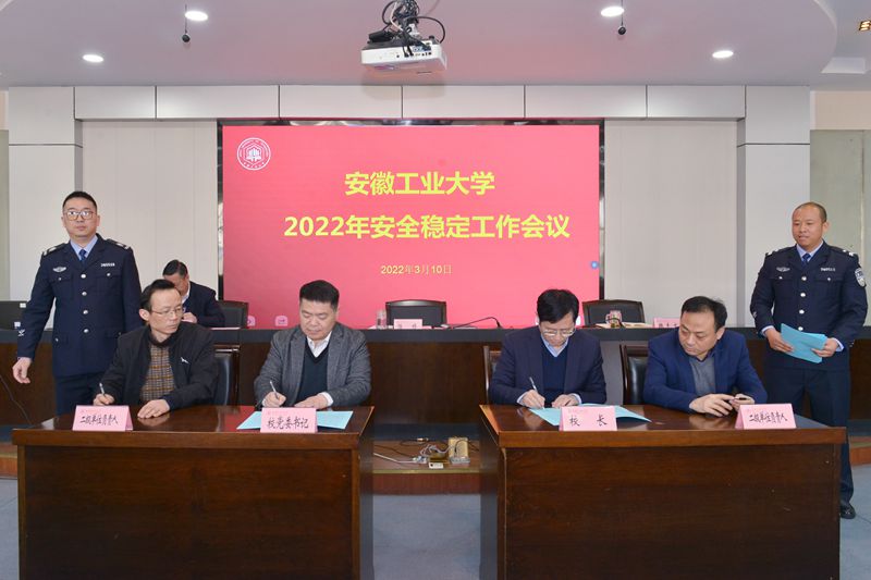 会上,陆林、魏先文代表学校与学院(部门)党政主要负责人代表签订了《安徽工业大学2022年安全稳定、意识形态与网络安全工作目标责任书》。