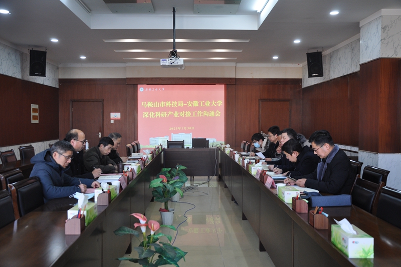 1月30日下午,马鞍山市科技局党组书记汤向阳、局长景维光一行来校开展深化校地产学研合作交流。校党委常委、副校长水恒福出席会议,科研处、工程研究院负责人参加会议。
