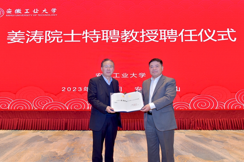 姜涛院士长期深耕冶金行业,学术造诣高深、治学风范严谨、科研成就斐然,是享誉全国的冶金工程和资源综合利用专家,为我国钢铁工业绿色低碳转型作出了杰出贡献。在致辞中,他回顾了与安徽工业大学因钢结缘的合作历程,表示此次受聘特聘教授,既感十分自豪、又感责任重大,将坚持以国家重大需求为导向,结合自身学科领域和研究专长,积极为安徽工业大学的人才培养、队伍建设、平台打造、科学研究等事业发展贡献自己的力量。