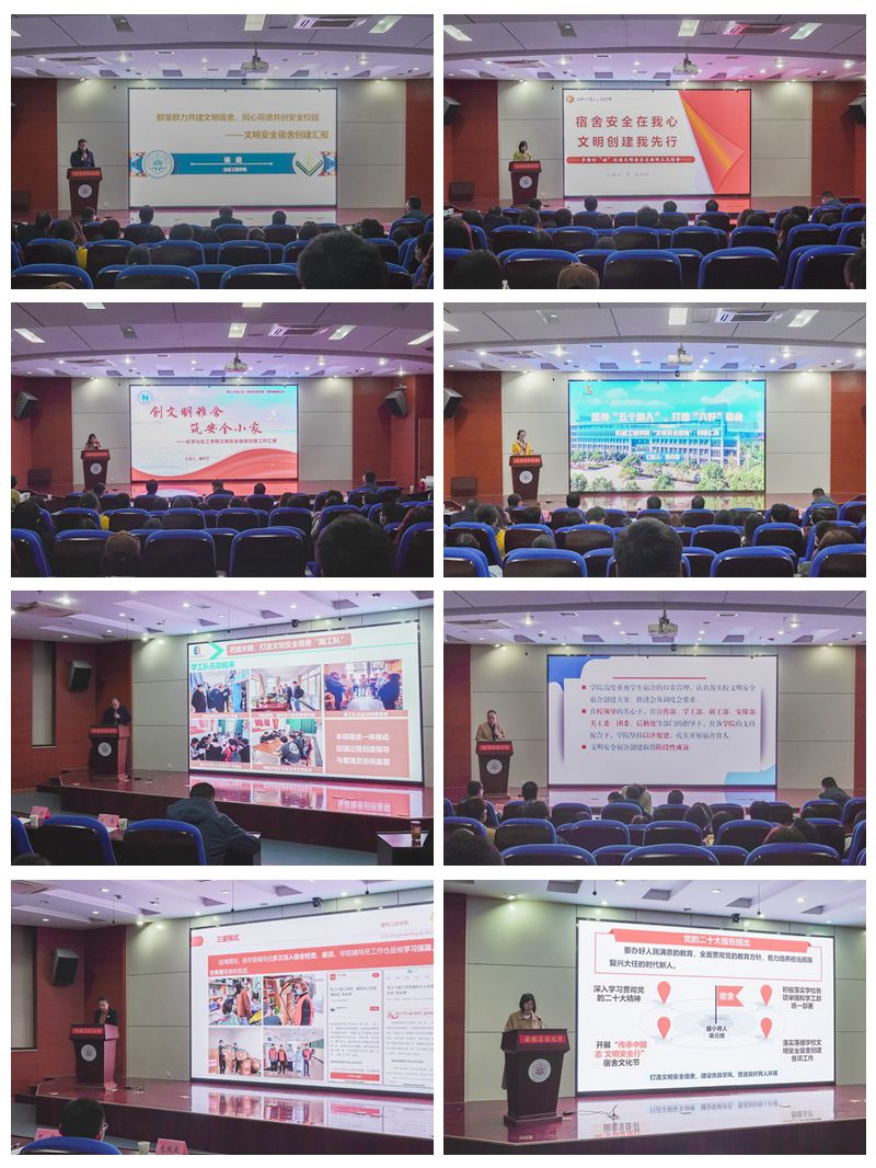 3月13日下午,我校文明安全宿舍创建评比答辩会在秀山校区图书馆报告厅举行。校党委副书记祖明,宣传部、学工部、研工部、安保部、后勤处等部门负责人担任评委,各学院分管学生工作副书记,团委书记、辅导员和学生代表180余人参加答辩会。