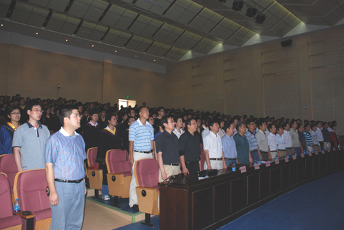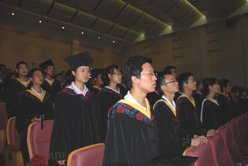 6月29日上午,在雄壮的国歌声中,我校2010届学生毕业典礼在东校区大学生活动中心礼堂隆重举行。校领导李辉生、岑豫皖、李家新、林钟高、汪光阳、陈润、葛芦生、张国宝出席典礼。近600名毕业生代表和教师代表参加了毕业典礼。