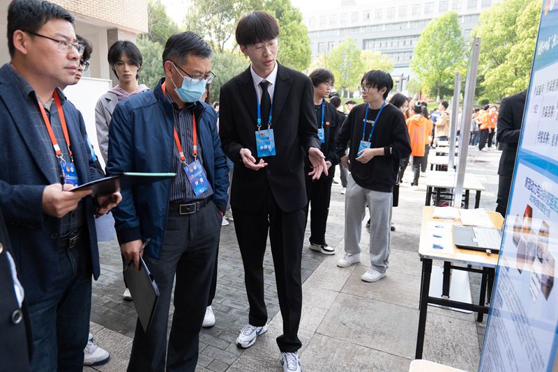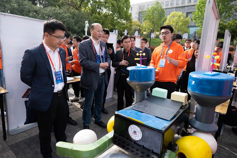 校级终审决赛采用项目展示和陈述答辩相结合的方式进行。比赛过程中,各参赛团队利用展板展示、实物演示、现场实验,对项目的研究背景、设计思路、构造原理、创新优势等方面进行陈述,专家评委从材料规范性、选题时代性、作品创新性、调研数据支撑、应用成熟度等方面对项目进行考察。陈述答辩环节参赛队员们情绪饱满、语言流畅、思维清晰,展现出良好的综合素养。评审专家围绕项目科学性、先进性和实用性等方面进行了重点提问,并结合项目实际给出了针对性的指导。最终评选出一等奖32项和二等奖55项,同时确定了15件入围省赛作品。