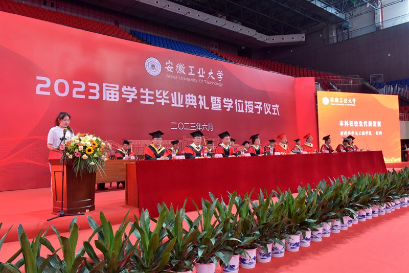 6月7日上午,冶金工程学院、材料科学与工程学院、化学与化工学院、微电子与数据科学学院联合举办的2023届学生毕业典礼暨学位授予仪式在秀山校区体育馆隆重举行。校党委书记陆林,校党委副书记、校长魏先文,校党委常委、副校长顾明言、水恒福、曾杰出席。学生工作部、研究生工作部、团委、校友工作处负责人,学院领导班子成员、各系主任、教师代表、班主任、辅导员参加,共同见证1662名毕业生圆满完成学业。仪式由顾明言主持。