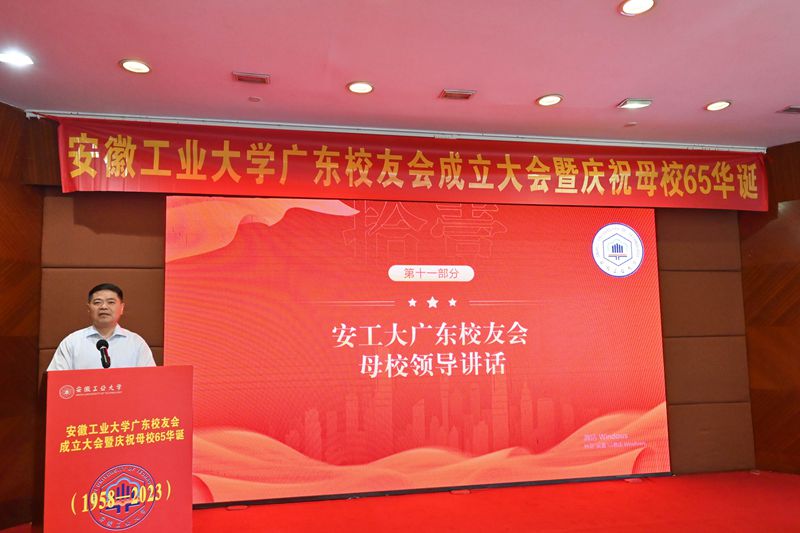 6月10日,安徽工业大学广东校友会成立暨庆祝母校65华诞大会在广州召开。校党委书记陆林率党办校办、研究生院、教务处、校友工作处负责人出席。马鞍山市政府代表以及各地170余名校友参加。
