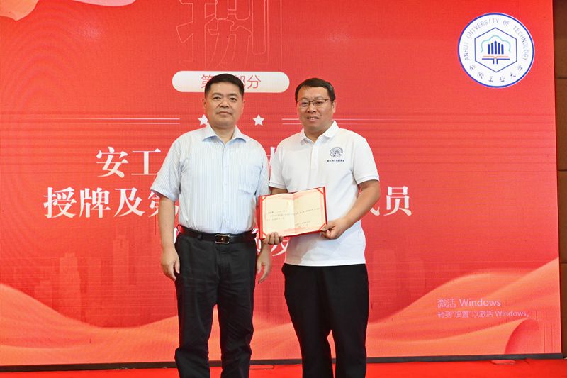 陆林为“安徽工业大学广东校友会”授旗揭牌,并向孙为军会长颁发聘书。