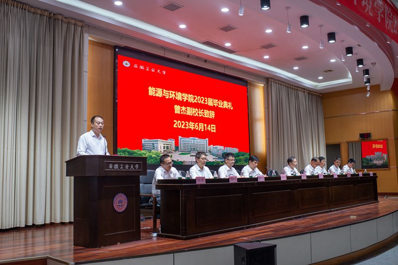 曾杰代表学校向即将踏上新的人生旅途的同学们表示热烈祝贺,并指出能源与环境学院今年279名本科毕业生中,有93人将进入国内“双一流”高校攻读硕士研究生,考研录取率居全校前列;涌现出校“十佳班级”能源与动力工程191班等一批先进集体和校“大学生自强之星”、校“十佳大学生”余锦仁等一批优秀学生典型个人。这些成绩展示了学院良好的育人成效和能环学子努力拼搏的精神风貌。曾杰勉励同学们坚持梦想,做敢于担当、永不言弃的人;不断学习,做追求真理、勤于实践的人;不懈奋斗,做砥砺奋进、开拓创新的人。