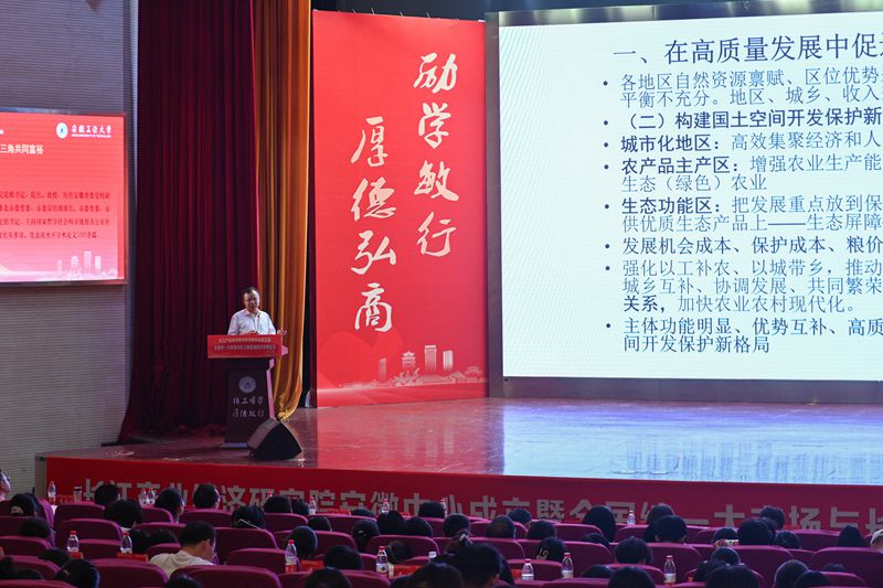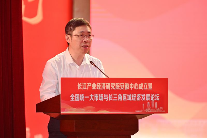 6月24日下午,我校与长江产业经济研究院主办的长江产业经济研究院安徽中心成立仪式暨全国统一大市场与长三角区域经济发展论坛在秀山校区新大学生活动中心举行。校党委书记陆林,安徽省社会科学院党组书记、院长曾凡银,南京大学副校长陆延青,马鞍山市委常委、宣传部长陈永红出席。长江产业经济研究院专家学者,安徽省委宣传部、马鞍山市社科联、市科技局相关负责人,学校相关部门负责人、商学院师生代表等近600人参加。成立仪式由校党委常委、副校长王先柱主持。